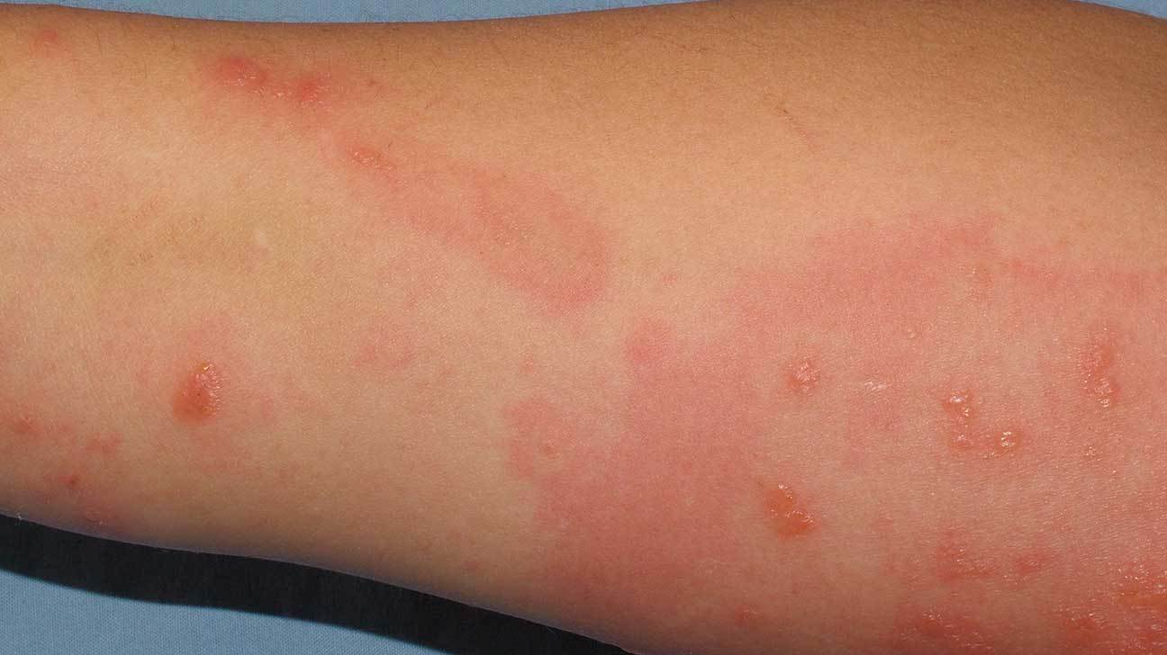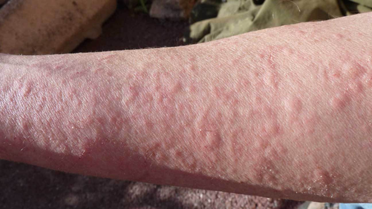 皮膚接觸過敏原後幾分鐘到幾小時出現發癢,凸起的傷痕
