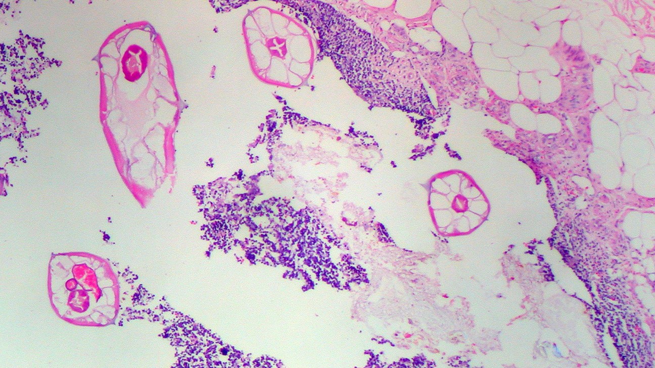 大便中的饒蟲可用“膠帶測試收集為醫院診所收集蟲卵在顯微鏡下進行檢查