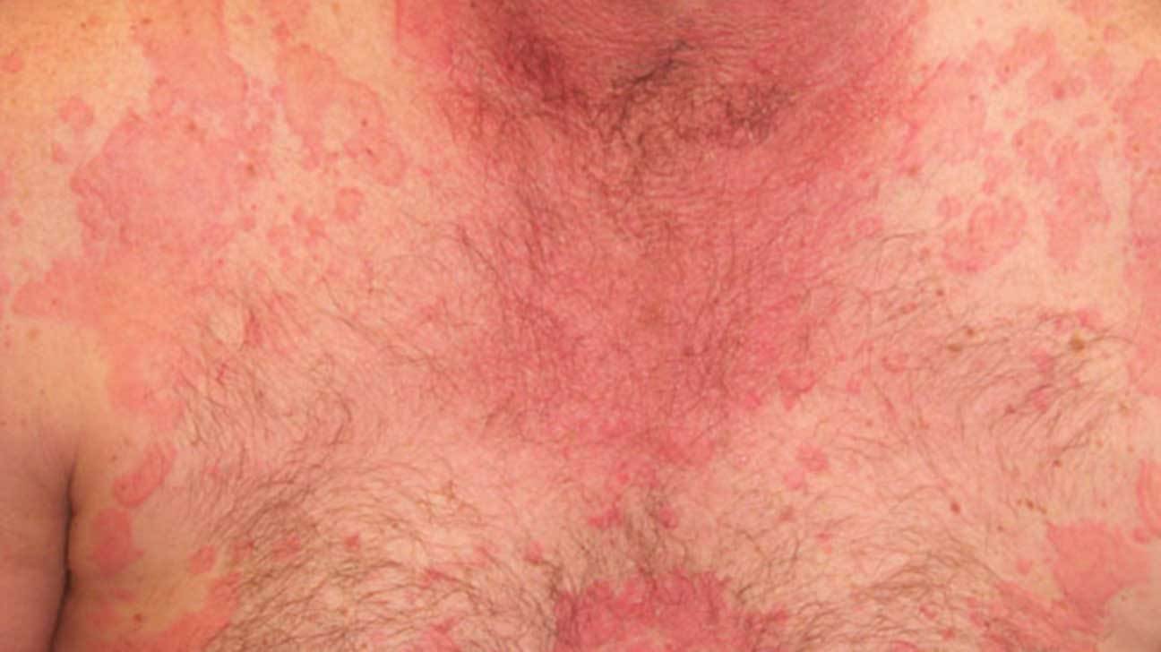 環中央的皮膚看起來清晰而健康,環的邊緣可以向外擴散。發癢的