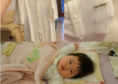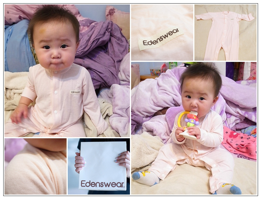 Edenswear鋅抗敏系列添加了氧化鋅的成份,可以有效保健小寶貝的肌膚,柔軟舒適、抗菌除臭,又可以防黴、防曬抗UV,選擇它做為最貼近泡芙的貼身衣物讓我好放心…