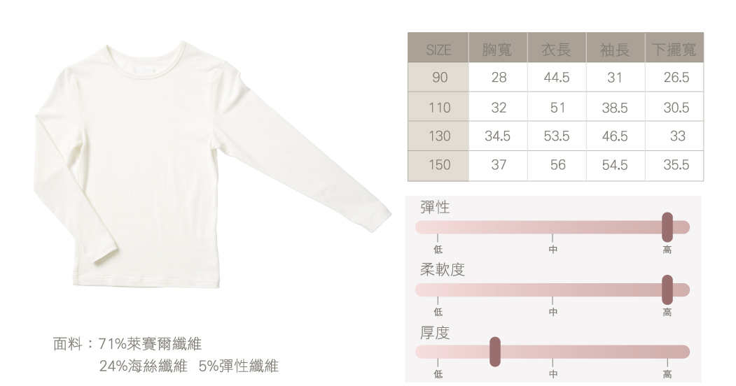 海藻纖維含豐富膠原蛋白吸濕潤膚,穿著時釋放微量礦物質維生素,使您感覺健康舒適安神放鬆,通過歐盟多項環保認證,天然無毒環保健康,嬰兒孩童都能安心使用。天絲具有天然抗菌含水率比棉花多50%的優異功能能給皮膚敏感寶寶最佳呵護