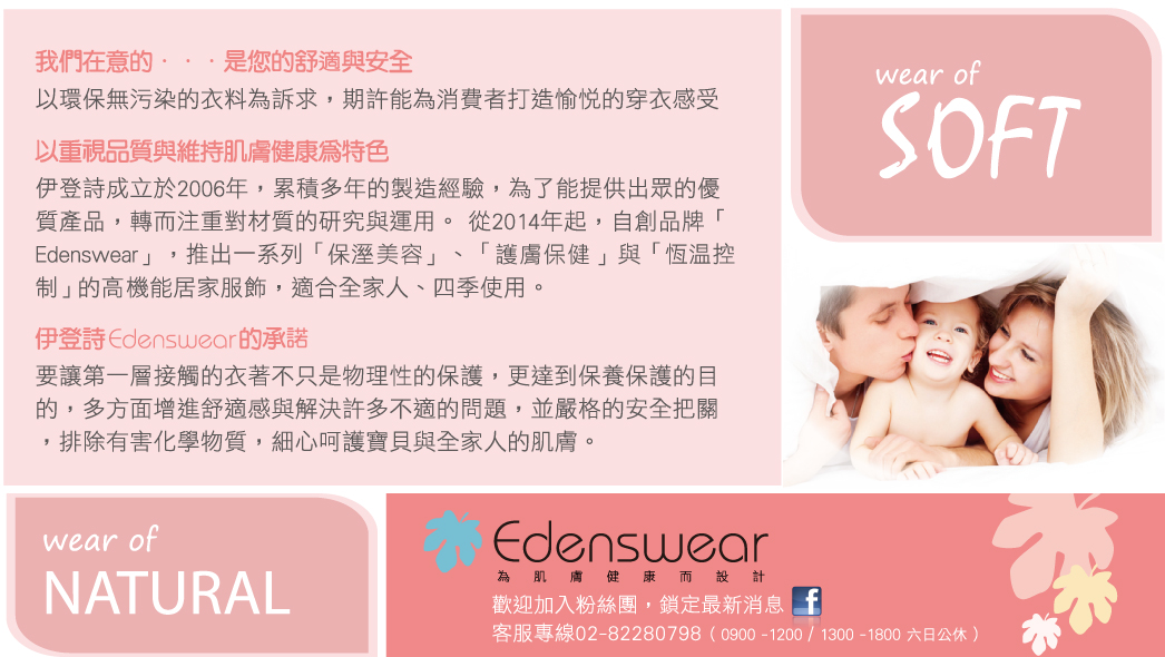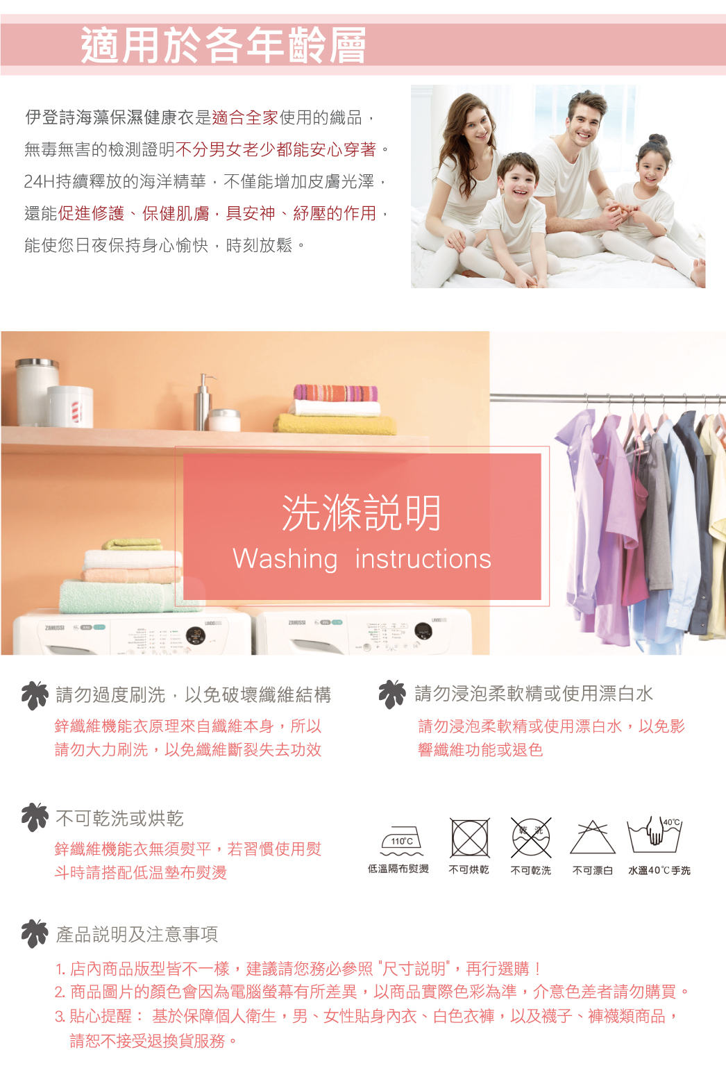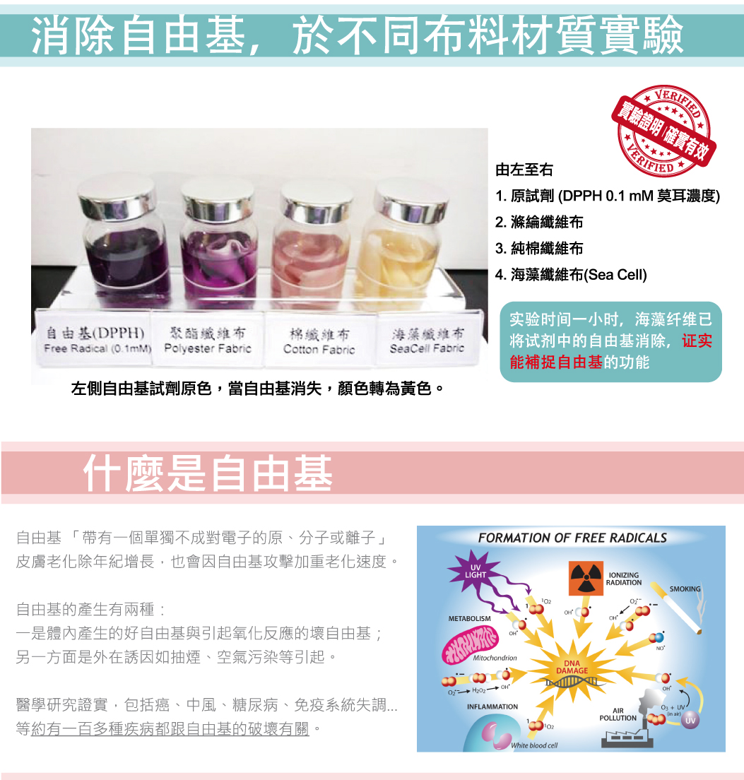 海藻纖維含豐富膠原蛋白吸濕潤膚,穿著時釋放微量礦物質維生素能中和有害自由基,使您感覺健康舒適安神放鬆,通過歐盟多項環保認證,天然無毒環保健康,嬰兒孩童都能安心使用。