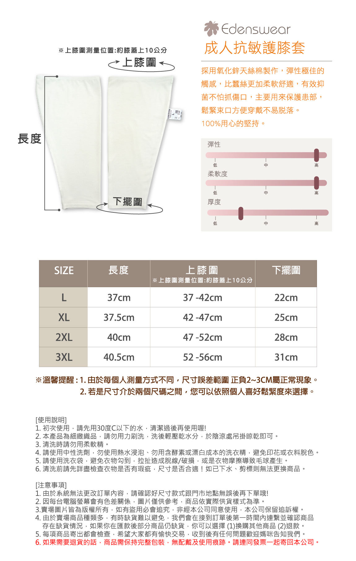 - 黑色膝套第一次下水洗滌會略為掉色.請與白色衣物分開單獨手洗
