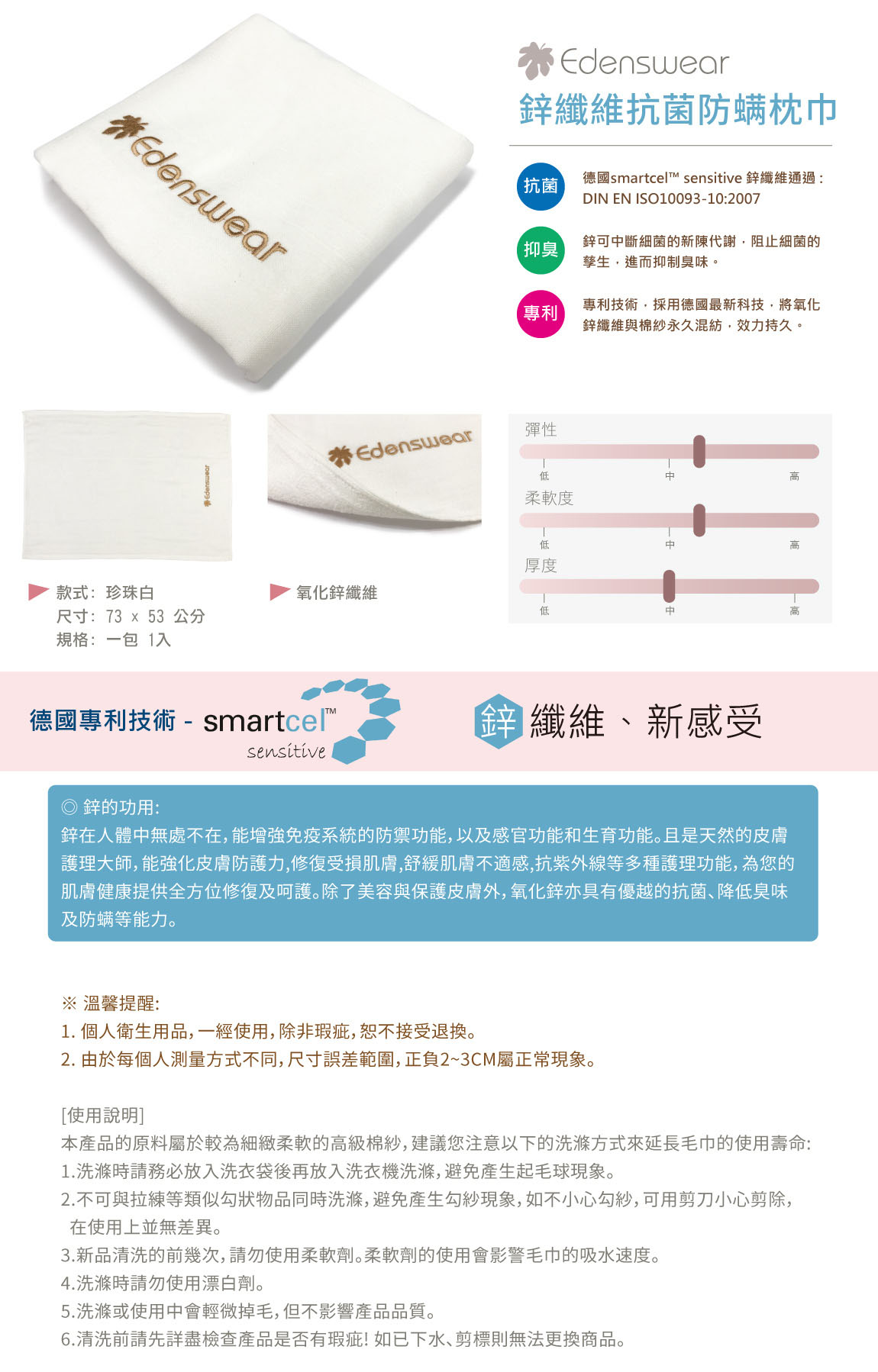 德國smartcel氧化鋅抗菌防蟎枕巾